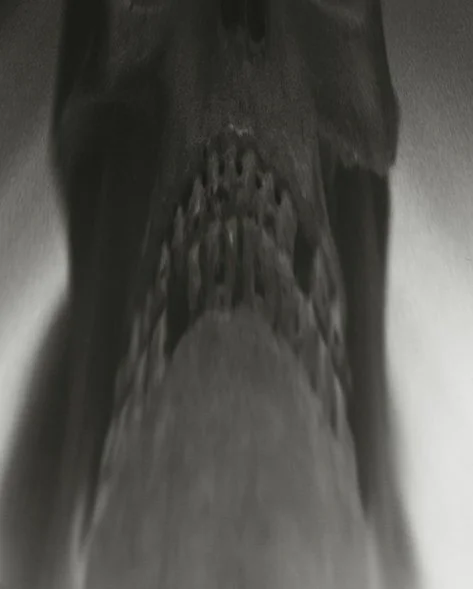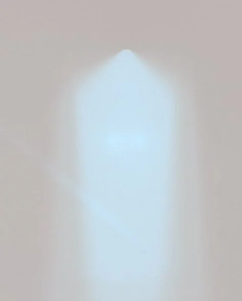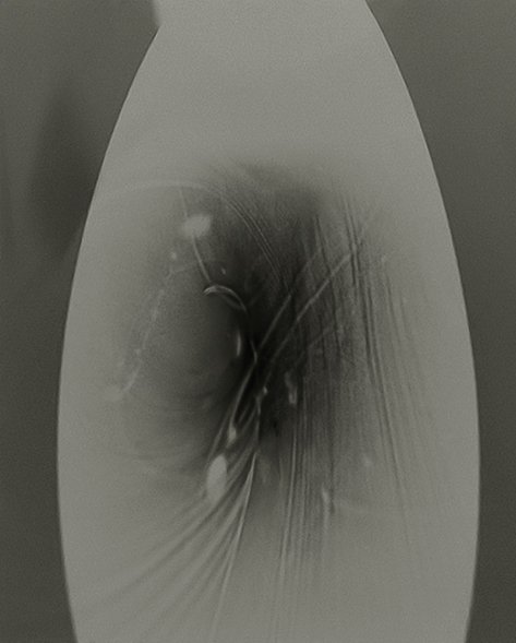 All distortions and colors are made in the darkroom, by exposing different materials such as glass spheres, crystals, geometric objects, x-rays, old films, etc... on gelatin-silver paper, transformed in such a way as to create extreme light situations and develop figures and objects which are barely recognizable. The length of exposure, together with chemical treatments of the paper, determine the intensity of the color. Some final images soak in acids or are buried in soil for weeks, thus changing their colors or compromising the photographic emulsion. This technique embraces the photographic “errors” of the analog development process with a lack of contrast, scratches, over or under exposure and does not really differentiate between a positive image or negative image.
